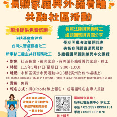 支持共好的阿朗水蜜桃 新事陪伴尖石鄉的原民果農走過21個年頭,在果農努力及新事社工、青年志工與教會夥伴的共同協作下,阿朗水蜜桃順利銷售及供應給支持者。 立即行動 電子發票 捐款愛心碼102 我們有愛心碼囉 愛心一領二 愛心不落後 聚沙可成塔 我要捐款 照護技能大進化 移工用心學習、用愛照顧 新事社會服務中心的移工照護訓練課程也來到了第二次!來自印尼、越南、菲律賓的外籍看護們帶著上一次課程的收穫與期待,再次踏進教室。 立即行動 聘僱移工家庭 與移工共好服務 打造雇主放心移工安心的新勞雇關係! 聯絡新事社會服務中心,了解更多關於良好雇主和移工溝通、勞雇關係促進、相關法律及資源的資訊吧! 了解更多 捐款支持《扶原民‧救弱勢》 衛部救字第1141363166號 助原住民弱勢及受災家庭和青少年培力學習,迎向未來,翻轉命運。 立即行動 前項下一頁 Donate支持我們讓我們一起將愛心傳遞給需要幫助的弱小兄弟姐妹,幫助他們翻轉人生,邁向美好未來。 支持 《外籍漁工服務》剛開始 冬日凜冽的海風中, 工作人員即使穿着厚厚冬裝仍舊免不了打顫,個個凍得臉色鐵青, 此時衣著單薄甚至短袖的他們出現在我們面前,說着各國的語言, 臉上閃爍着害羞和單純的神情,經過雙語專員的溝通, 當瞭解到冬衣送暖活動只是開始,我們會持續進行系列關懷活動,而且任何勞資爭議、職災、人口販運等剝削問題 捐款支持 支持《原住民青少年課後陪伴服務》邀請您每月捐2000元 ,讓改變成為可能 ,幫助一個孩子今天有希望,明天就是一個家庭有未來! →募款專案 捐款支持 支持《 職災服務》歷經工傷工殘, 曾擁有過平凡的美好和幸福, 劫後歸來, 身殘心碎, 一切瀕臨烏有, 這就是職災勞工真實的寫照, 邀請您每月捐贈1000元, 幫助職災勞工渡過艱難, 整合社會資源,獲得最好的處遇, 重建生命! 職災後他職始終微笑著面對斷掌後的漫漫復健 →募款專案 捐款支持 支持 《原住民青少年多元學習-圓夢計畫》本中心從104年開始為原住民青少年辦理圓夢計畫,讓青少年學習到如何面對問題、解決衝突、互助合作、發揮創意,在圓夢活動中培養他們的各種能力與學習成長。 期待您的支持,透過圓夢計畫提高原住民青少年的課外才能,如:泰雅語、吉他 、跆拳道等等,改善他們的學習態度和方法,鼓勵個人探索和才能培養, 捐款支持 支持《移工服務》家庭需要移工, 工廠需要移工, 他們已經是我們生活中不可或缺的一族, 照顧老人, 從事基層工作, 因為語言和文化的隔閡,時有移工受虐的情形發生 , 邀請您每月捐1000元一起來幫助移工克服語言文化障礙,使他們得到合理公正對待! 捐款支持 支持《扶原民● 救弱勢》籌募提供新竹縣尖石鄉、五峰鄉、竹東鎮原住民弱勢家庭和青少年,以及遭受職業災害的勞工及其家屬和外籍移工提供關懷服務所需經費,以利各項服務工作順利執行。 協助為新竹縣尖石鄉、五峰鄉、竹東鎮原住民弱勢家庭和青少年服務,強化部落家庭的能量和青少年的翻轉學習,進而達至全方位之主動學習, 捐款支持 前項下一頁 所有專案 Our Services新事服務新事社會服務中心秉持「修和與正義」使命,陪伴職災勞工、移工與外籍漁工,並關懷原住民部落與青少年,提供法律協助、教育培力與產業支持,致力推動尊重、公平與共好社會。 移工服務 職災服務 漁工服務 移工雇主共好 原住民部落服務 原住民青少年服務 TRACK RECORD新事影響力我們以陪伴與倡議行動,將力量帶到最需要的地方。這些數字背後,是勞工、移工、漁工與原住民家庭獲得支持與希望的真實故事。 深耕台灣 54/ 年 服務總人數 154,230/ 人次 培力訓練 28,487/ 場次 最新消息 2026/04/17 一步一步,她重新站回生活裡MORE 2026/04/09 一筆一畫,找回內在力量MORE 2026/04/09 不只是節慶,是生活的同行MORE 2026/04/02 不是偶發,而是日常:台灣工安的危機MORE 2026/04/02 【免費課程開放報名中】給家庭照顧者的照護訓練課-常見照顧風險因子與褥瘡預防MORE 2026/03/28 在語言中找到力量:一個中文班的日常與改變MORE 2026/03/19 2026年4月12日 邀請您參與「聘僱移工家庭-活力共融社區活動 」MORE 2026/03/14 最珍貴的收穫,並不在於名次MORE 前項下一頁 所有消息 合作夥伴 前項下一頁 合作故事