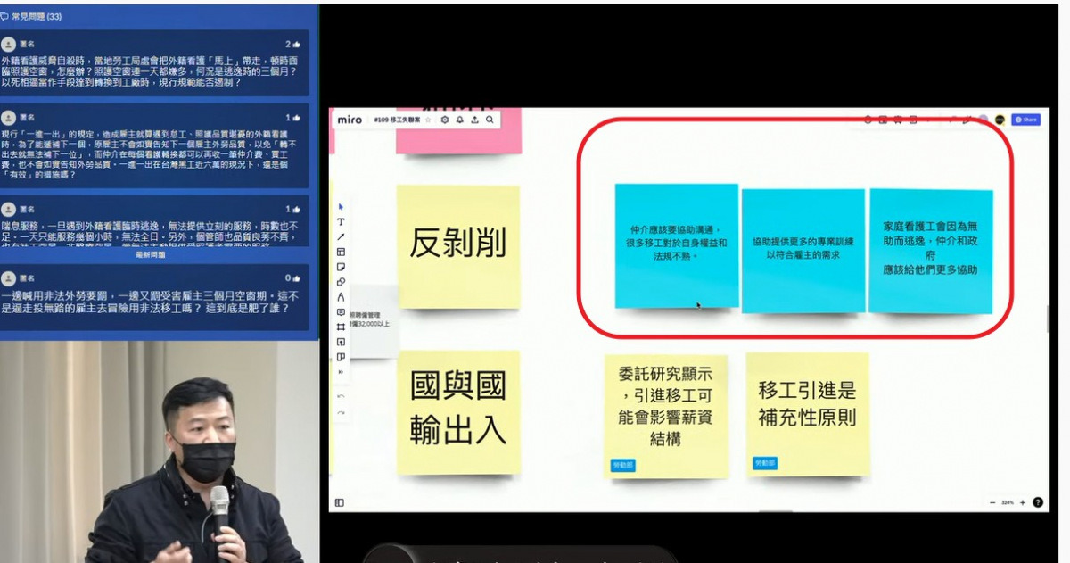 政府於111/3/25舉辦關於外籍看護工的協作會議,新事李正新社工以服務所見,回應關於失聯移工相關討論如下六小點:
