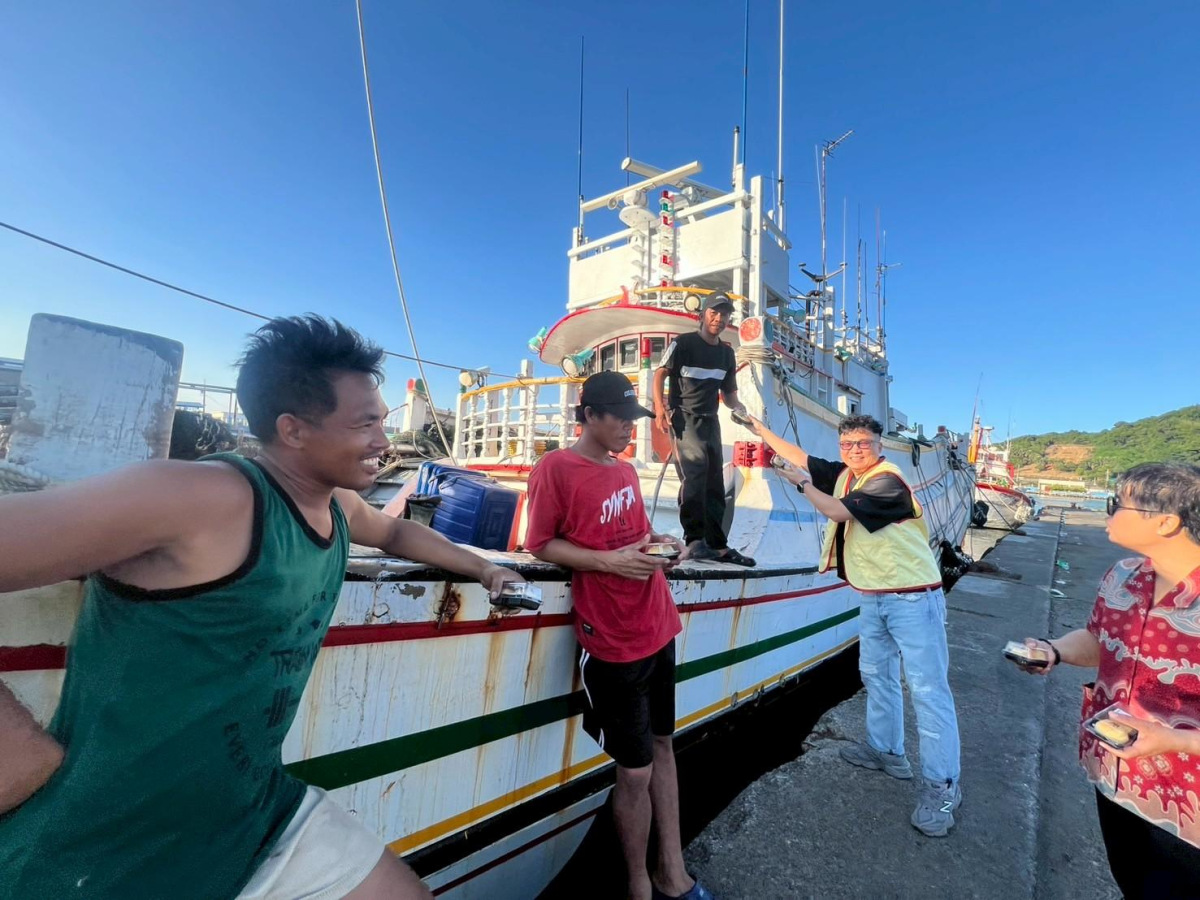 ▲親自到漁港一一發送給外籍漁工品嘗。