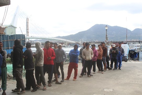 在發放開始前,基隆市警察局與社會處再次向外籍漁工進行工作與生活相關法規以及權益宣導,協助他們在日常中更能避免因資訊不足而觸犯規定。