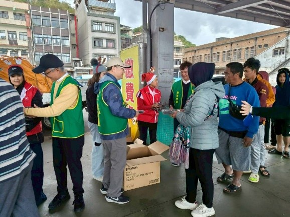 ▲新事、基隆東區扶輪社於正濱漁港發送保暖物資。