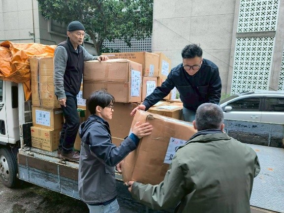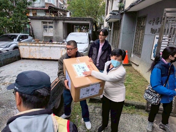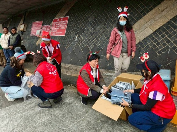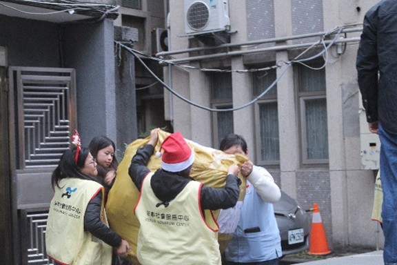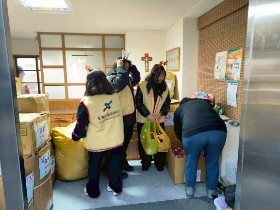 12 月 4 日清晨,天氣格外寒冷,但新事社會服務中心的辦公室早已燈火通明。早上六點半,工作人員準時集合,大夥合力將事前已分配、裝箱與裝袋好的禮物搬上貨車,並逐一盤點數量,確保物資無誤。出發前,鍾佳伶執行長與李正新副主任再次向所有參與的同仁與志工提醒當日的工作內容與安全注意事項,隨後由徐森義神父帶領大家祈禱祝福,祝願整日行程順利平安。