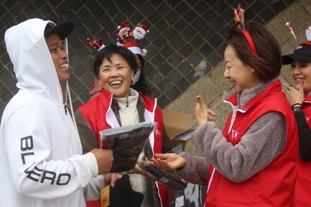 隨著活動正式展開,漁工們依序上前、一站一站領取禮物,現場不時傳來笑聲與道謝,港邊雖然寒風陣陣,卻因著愉悅與熱鬧逐漸暖和起來。最終,共有 436 位來自印尼、越南及菲律賓的漁工收到禦寒物資。這些禮物承載著社會大眾的感恩與祝福,也讓漁工們在異鄉的冬天裡感受到踏實的溫暖。