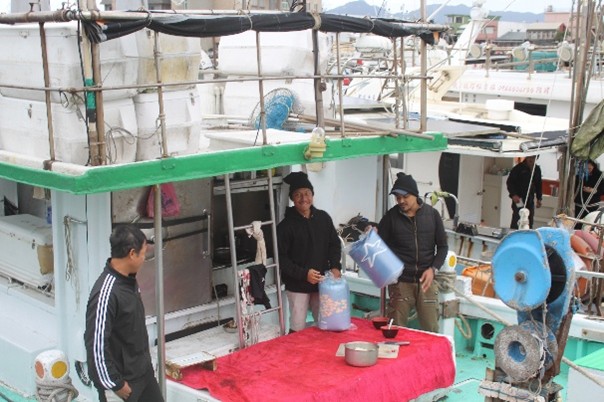 漁工的生活深受天氣影響:當天氣適合捕魚,他們便隨船出海;當海象不好,漁船便靠港,漁工則留在港邊整補漁具。為了讓更多人能收到禮物,新事依據過往經驗,選定漁船較常靠港的時段,希望在漁工休息時,親手把禮物交付給他們。