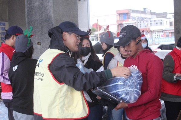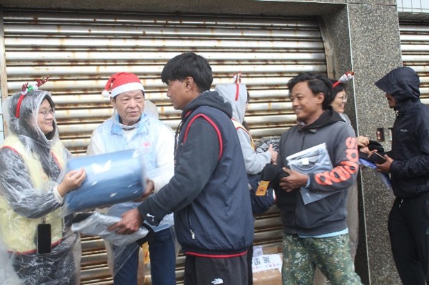 當天共有來自印尼、越南、菲律賓等國家的 271 位外籍漁工領取禦寒禮物。漁工們依序排隊,靜靜地在每一個發送站前等候,從容而有秩序。每一位接過禮物時的點頭、微笑與真誠的「謝謝」,都讓人深刻感受到他們對這份溫暖的珍惜與感激。