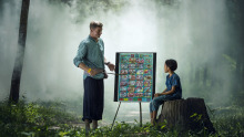 新事的社工員看見滿臉憂愁的琳琳獨自坐在角落,便上前詢問發生什麼事情,為何緊皺著眉頭?琳琳告訴社工員下禮拜四是爸爸的生日,看著爸爸每天穿著破舊的衣服上山工作,身上長滿汗疹和破洞髒污的工作服,是辛苦工作養家的印記,爸爸始終捨不得花錢買一件新的工作服。