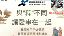 端午節將至,新事社會服務中心為聘僱外籍看護家庭雇主和移工,於6/11在耕莘文教院三樓舉辦「與粽不同,讓愛串在一起」活動,與耕莘文教基金會合辦,感謝耕莘文教院和Magis青年中心的協助,讓我們有個舒適的場地,共有22位雇主及移工共襄盛舉。