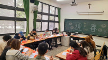 讓越南學員認識台灣過年祝福或拜年之話語,也同時讓學員學習寫對聯,將對聯帶回家貼在房門或是送給朋友。