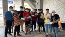 在颱風過後,雖然早上還是下著傾盆大雨,但到漁港時,天空逐漸出現一絲絲溫暖的陽光,新事社會服務中心與台大環境及職業醫學部透過行動式義診,來為港邊的外籍漁工進行健康檢查及職業傷害宣導。