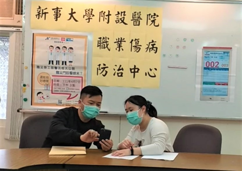 因為雇主與李阿寶對職災認定有爭議,阿寶自己送的勞保給付又核定成了普通傷病,於是今天新事職災社工陪同阿寶到職災門診就醫,希望協助阿寶來進行職業病鑑定流程,再重新辦理勞保職災傷病給付申請。