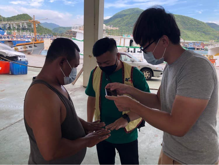 六月初,新事漁工行動服務隊與台大的醫師,在疫情嚴峻的情況中,依舊來到港邊為外籍漁工義診,並加強宣導防疫的各種相關事項。此次來到萬里及八斗子漁港,漁工們趁著休息的時間,紛紛前來接受醫師們的協助,除了透過檢查器具了解自身的健康狀況,同時向醫師諮詢身體上不舒服的處理方式。