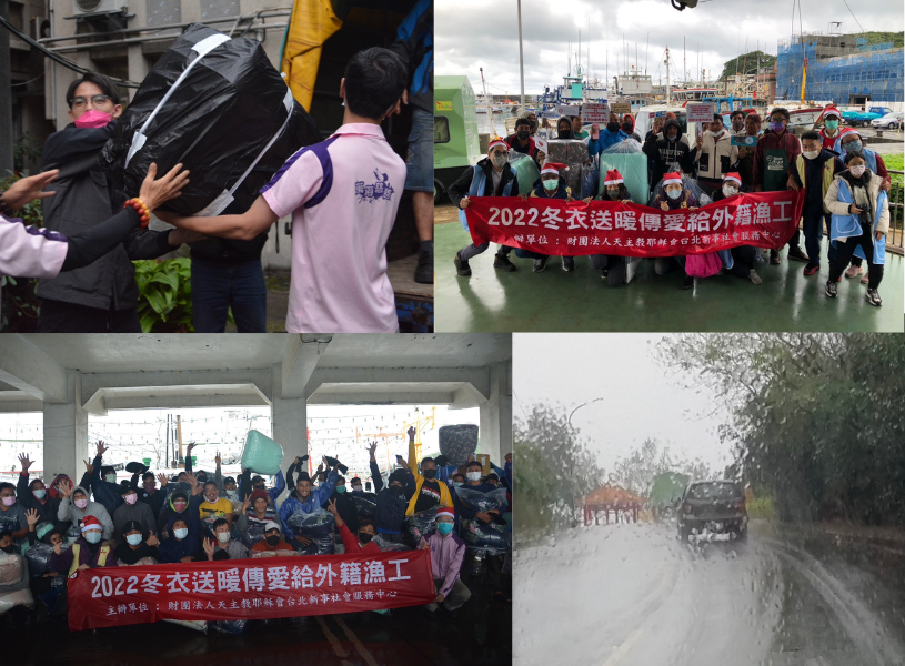 12/08的送暖活動,由徐森義神父與新事鍾佳伶主任帶領著同仁、實習生與合作夥伴博愛基金會、萬海志工隊、共22人,從澳底、馬崗、龍洞、深澳、八斗子、正濱等7個漁港,沿著海岸線發送好暖心福袋,共893位外籍漁工受益,包括印尼籍773位、越南籍49位及菲律賓籍71位。