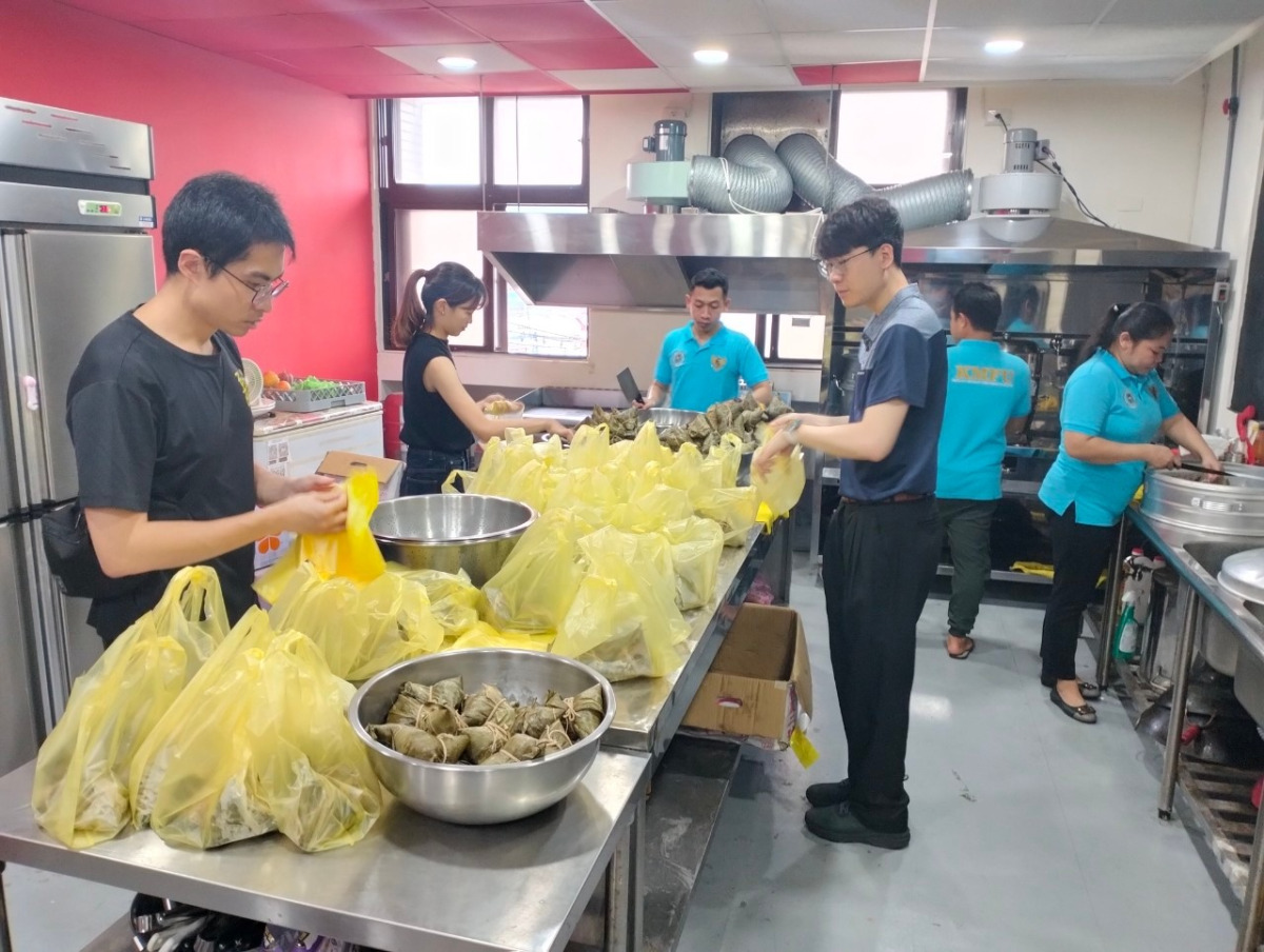 活動開始的前幾個小時,我們將收到的愛心粽子,藉由基隆區漁會提供的烹飪廚房,透過蒸籠把五百顆粽子加熱,外籍漁工與基隆市警局同仁也前來一同分工,經過快四個小時的努力,終於把五百顆冷藏粽子,加溫變成熱騰騰的粽子。