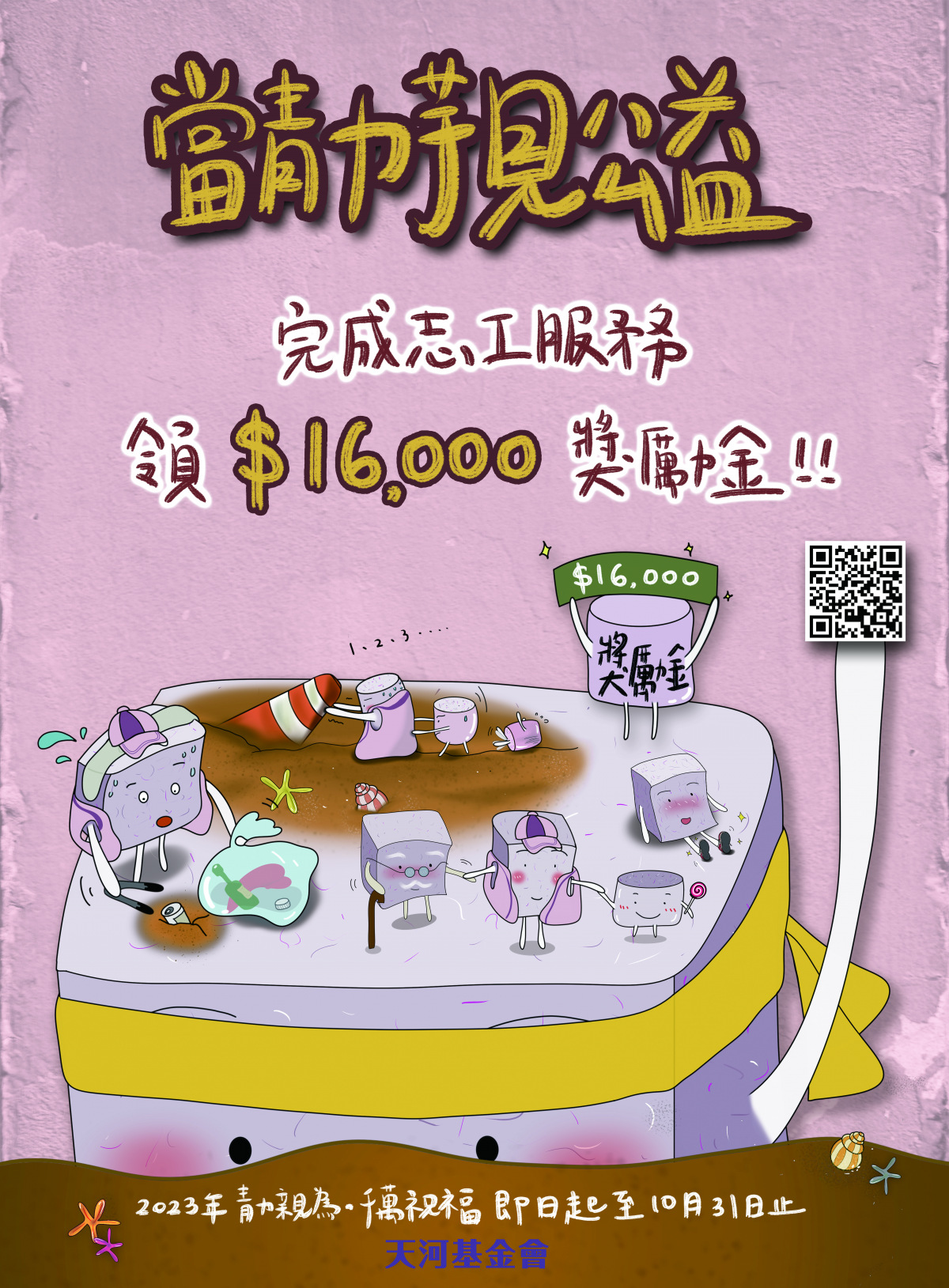 為減輕年輕人經濟壓力,天河基金會自2019年開辦「青力親為.千萬祝福」服務學習獎勵計畫,鼓勵須負擔學貸、不放棄理想的大專生及社會新鮮人,在辛勤求學、工作之際,仍樂於付出時間和心力,投入公益、關懷弱勢。