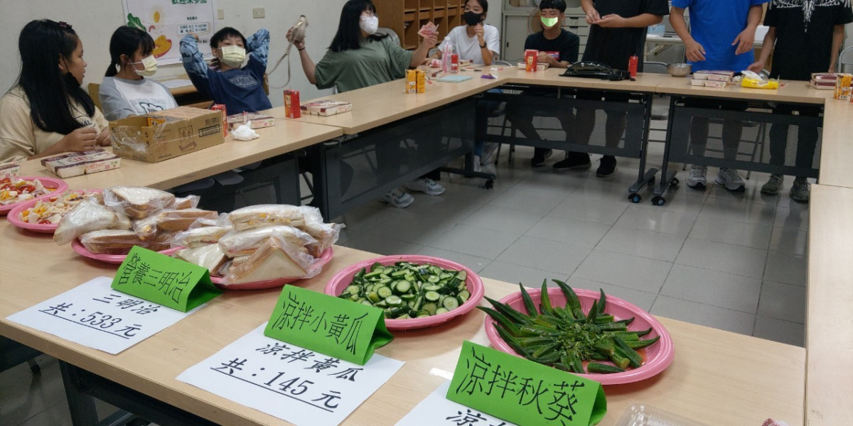 完成佳餚後進行材料估價活動,學員們很認真討論食材的價格,因為隊員意見不同有很多互動的交流,然後訂出各組認為合理的材料費。活動中讓學員了解到手作料理的樂趣以及食材的價格比想像中低廉、質量比市售成品還要佳,自己動手作料理很有趣又便宜。