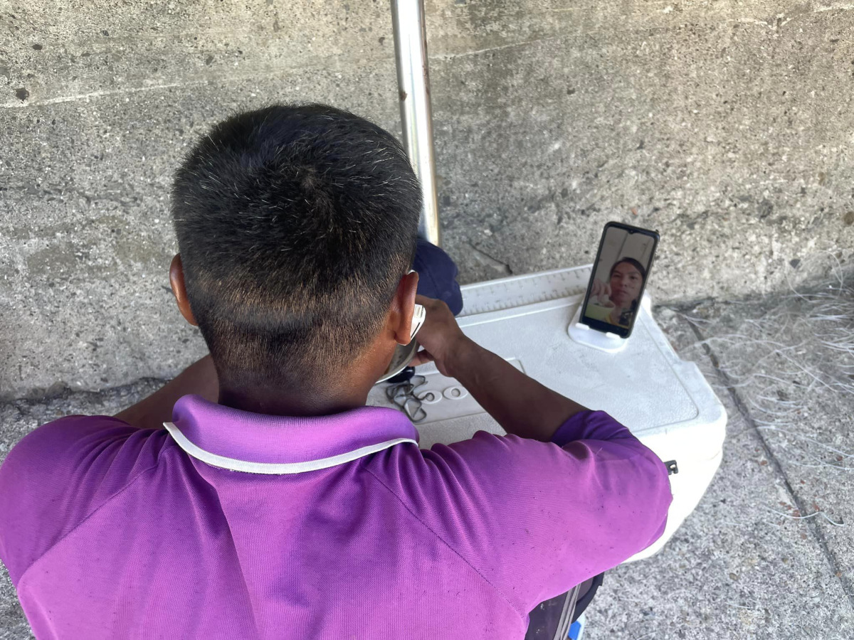 另一個跟夫妻有關的是在午餐時間,遇到了一名漁工正在吃飯,原先以為他在看影片或是直播,正新督導向前了解之後,發現這名漁工是平常會在吃飯時,跟也身處在臺灣工作的伴侶視訊,這個互動讓我印象非常深刻。
