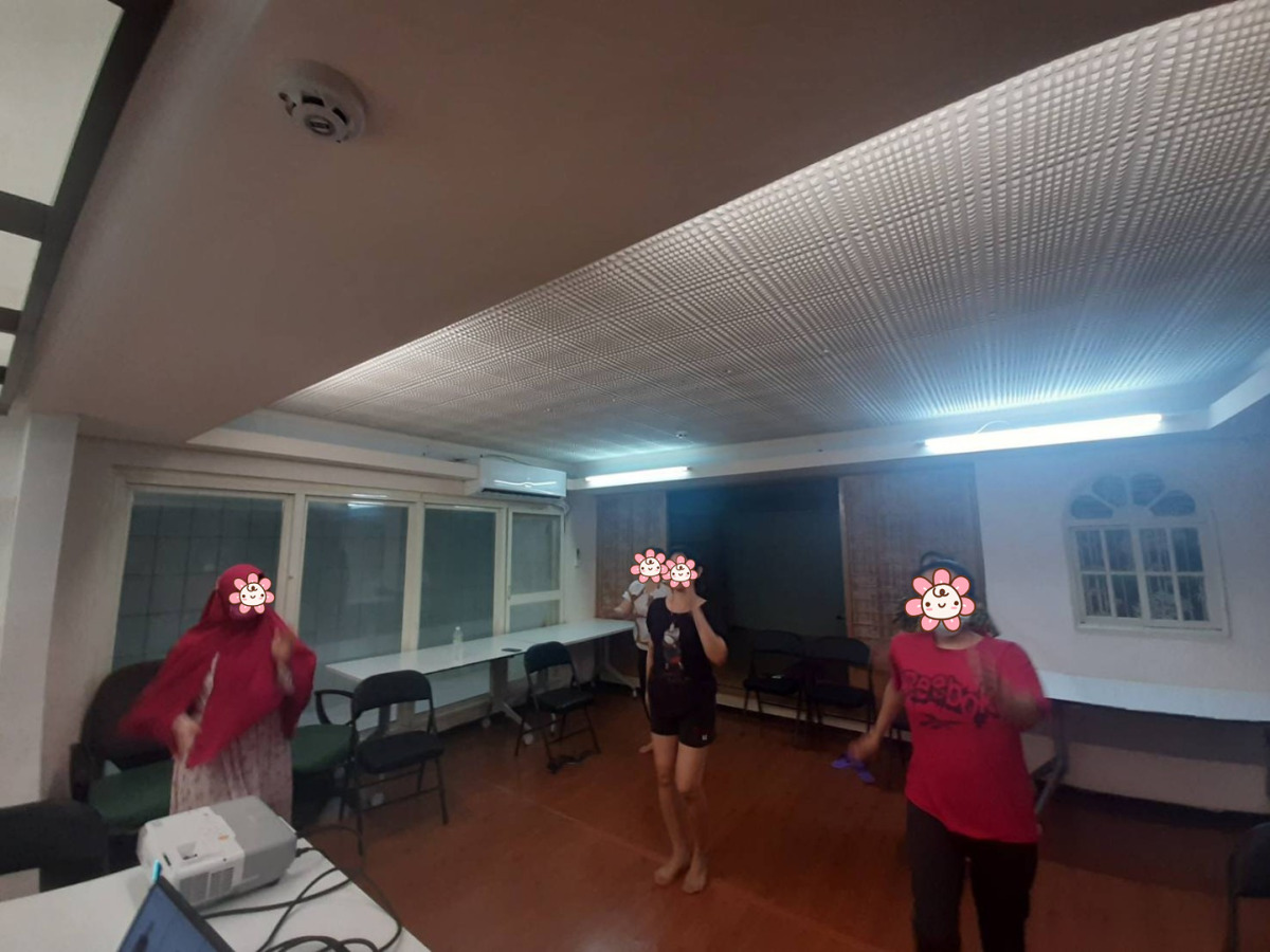 隨後,讓大家一起來運動。我們根據Youtube上的影片來運動,影片是30分鐘的有氧運動,動作算是不難跟著做。所有人都很有動力地參與,到最後大家都已經流汗並感到有點累,但都很高興能一起運動。