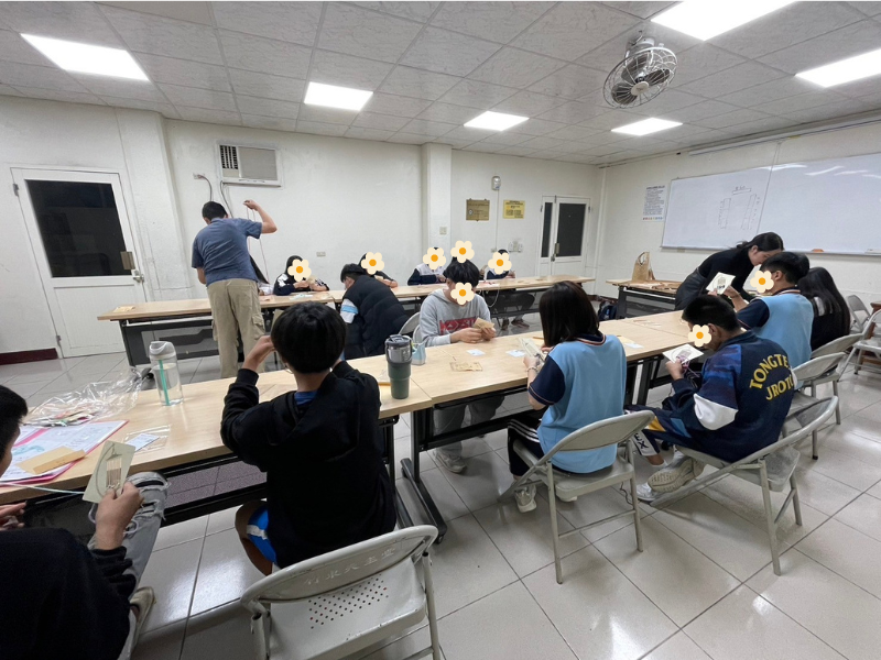 學生這才又靜下心,開始製作弓織。有些學生則是一拿到材料,聽了老師的講解,知道步驟及順序後,就安靜的在一旁織著自己的背袋,遇到疑惑會親自詢問老師。所有學生在老師的教導下一一完成了作品。