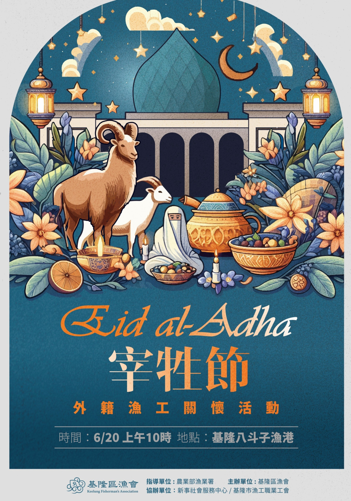 因此在今年6月20日早上,將在基隆市八斗子漁港,由農業部漁業署主辦,新事社會服務中心和基隆市漁工職業工會協辦,關懷外籍漁工活動。活動邀請伊斯蘭教長老到場唸經祈福,將宰牲節的意義融合在其中,透過活動關心港邊的穆斯林漁工,讓他們在台灣依舊因著宗教的節氣而歡慶,用信仰堅持在異鄉的心,也讓在地的台灣人體驗不同宗教文化的特殊。