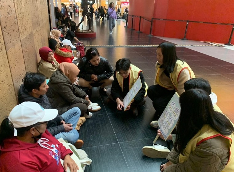 2024年12月8日,新事社會服務中心實習生、雙語人員一起到了台北車站以及附近印尼街,進行移工預防詐騙的宣導,透過知識性的傳遞,還有互相的經驗交流,希望提升移工朋友們對於詐騙的警覺心,不只保護個人的資訊和金錢,我們也提供了反詐騙資訊的海報,讓他們可以透過拍照或是掃描QRcode來分享給更多朋友,讓更多人可以了解這些詐騙類型。