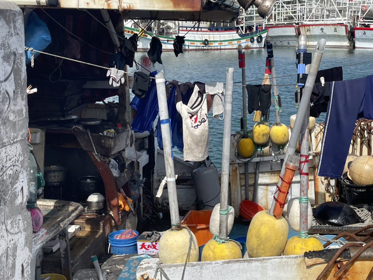 七個漁港看到各種大大小小數百艘不同的船隻,有捕小卷的、有捕魚的、有誘捕燈的、也有兼營觀光海釣船作業的;有當天來回的也有可以出海半個月的。所有漁船有一個共通點唯一不變的就是漁工沒有辦法好好舒服的休息睡一覺,沒有辦法好好的坐著吃頓飯,不管有沒有出海作業都沒有辦法穿到完全乾淨沒有鹽粒在上面的衣服,因為只能手洗後扭乾曬在船上。這對我而言是最衝擊內心的畫面!以前經過或是去漁港只覺得好多漁船藍白紅海天一色好漂亮,這些細微觀察和從前到漁港看到的是完全不一樣的面向,讓我內心非常的震驚和難受。這樣的深入或許一般人看不見,但是如果這當成一份工作,我們會有人願意做嗎?這是我在思考的!
