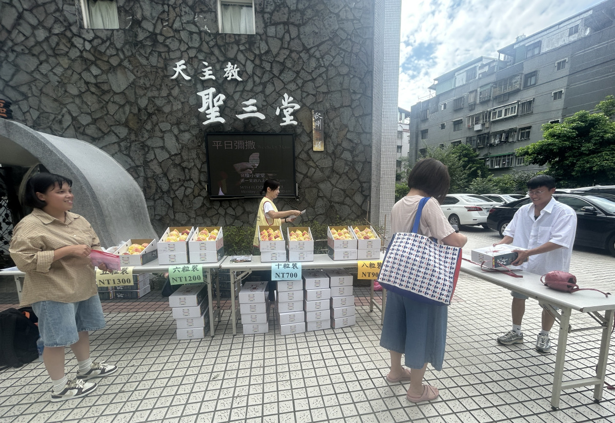 即便早上僅有一場彌撒,仍有熱情教友們踴躍購買,但因當日水蜜桃數量較多,仍有部分存貨未售完。就在此時,教堂會長主動表示願意在下午彌撒時協助販售,這份及時的伸手,讓我們深深感受到合作的力量。最終,所有水蜜桃皆順利售出,為這場協銷畫下完美句點。