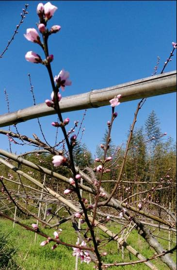今年一波波的寒流比去年晚報到,低溫使得水蜜桃樹遲遲花開,已經快要3月底了,才喜見水蜜桃樹花苞朵朵綻放。