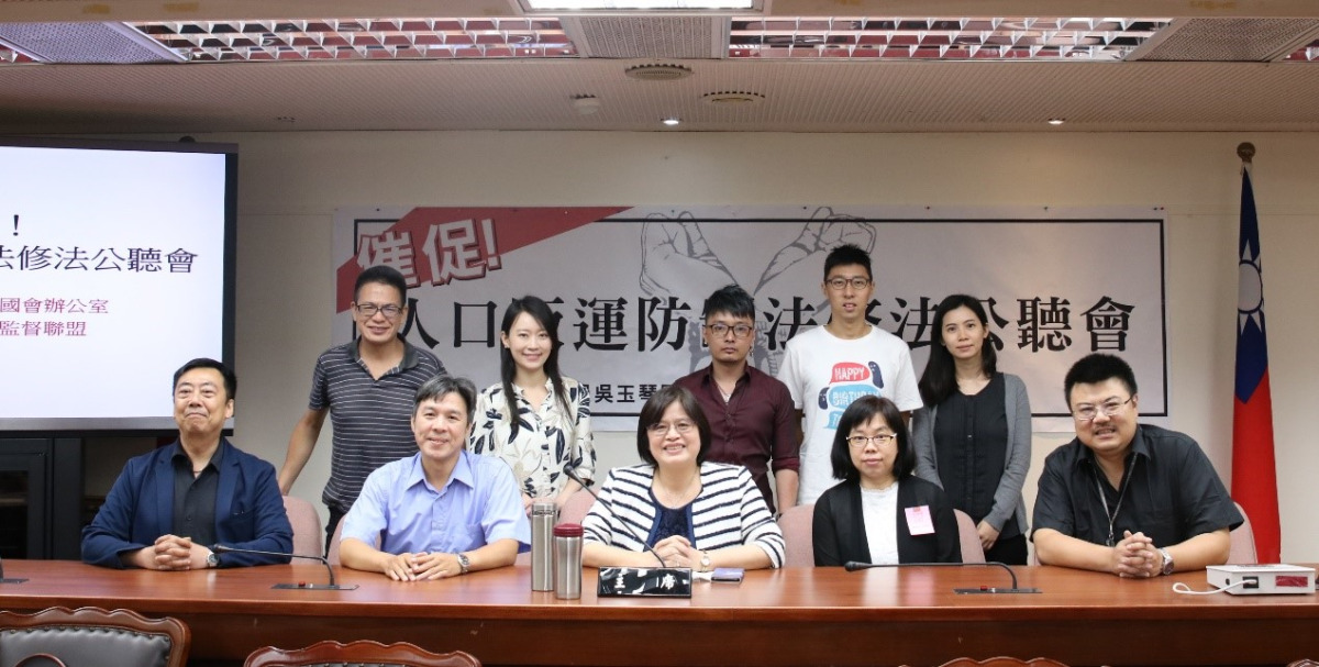 圖說:為了遏止勞力剝削、性剝削事件頻傳,民進黨立委吳玉琴12日召開公聽會,並提出修改人口販運防制法;會後吳委員與民間團體合照。(圖片來源:人口販運防制監督聯盟提供)