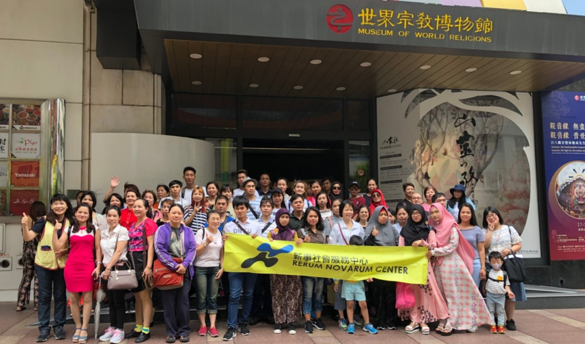 到了世界宗教博物館後,新事社會服務中心的鍾佳伶主任和博物館的工作人員在門口歡迎大家,移工朋友都表示好感動也很有親切感,大家也很興奮的在門口留下開心的影像。