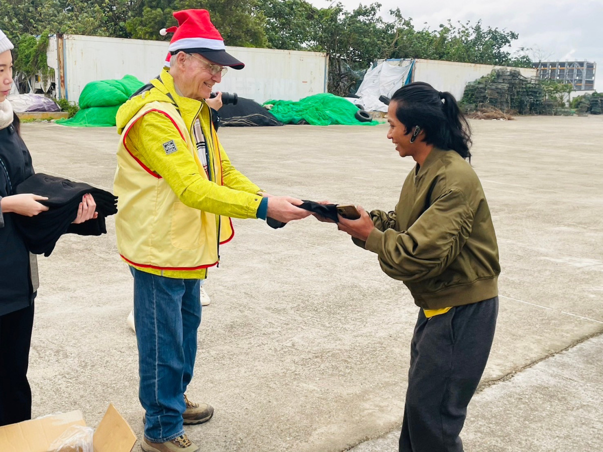 新事社會服務中心長年走在港邊,深知這些海上異鄉人在寒冬中最迫切的需要——保暖。一條棉被、一件發熱衣,對他們來說不只是禦寒物資,更是來自台灣社會的溫暖與希望。