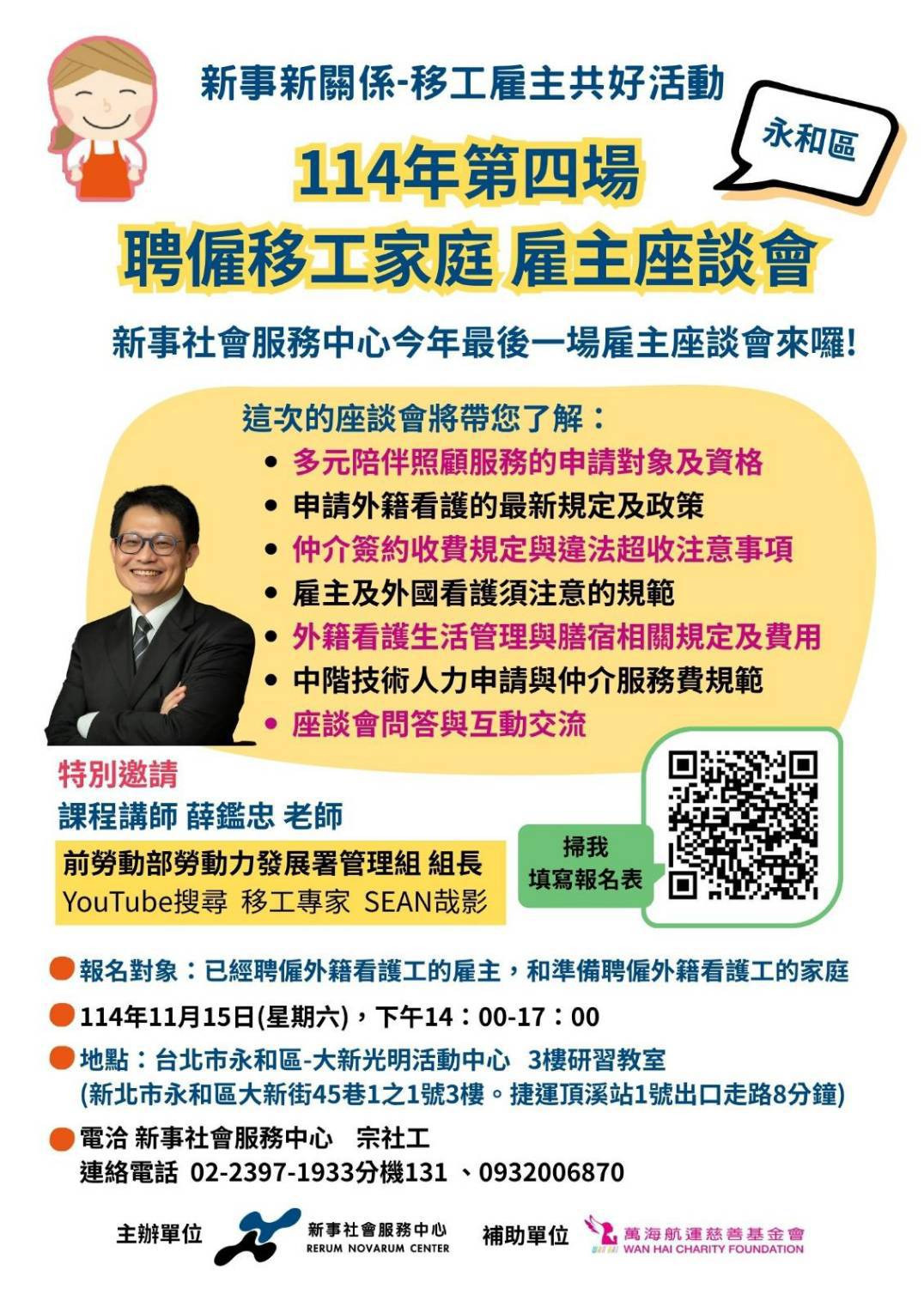 114年11月15日「聘僱移工家庭雇主座談會」報名中