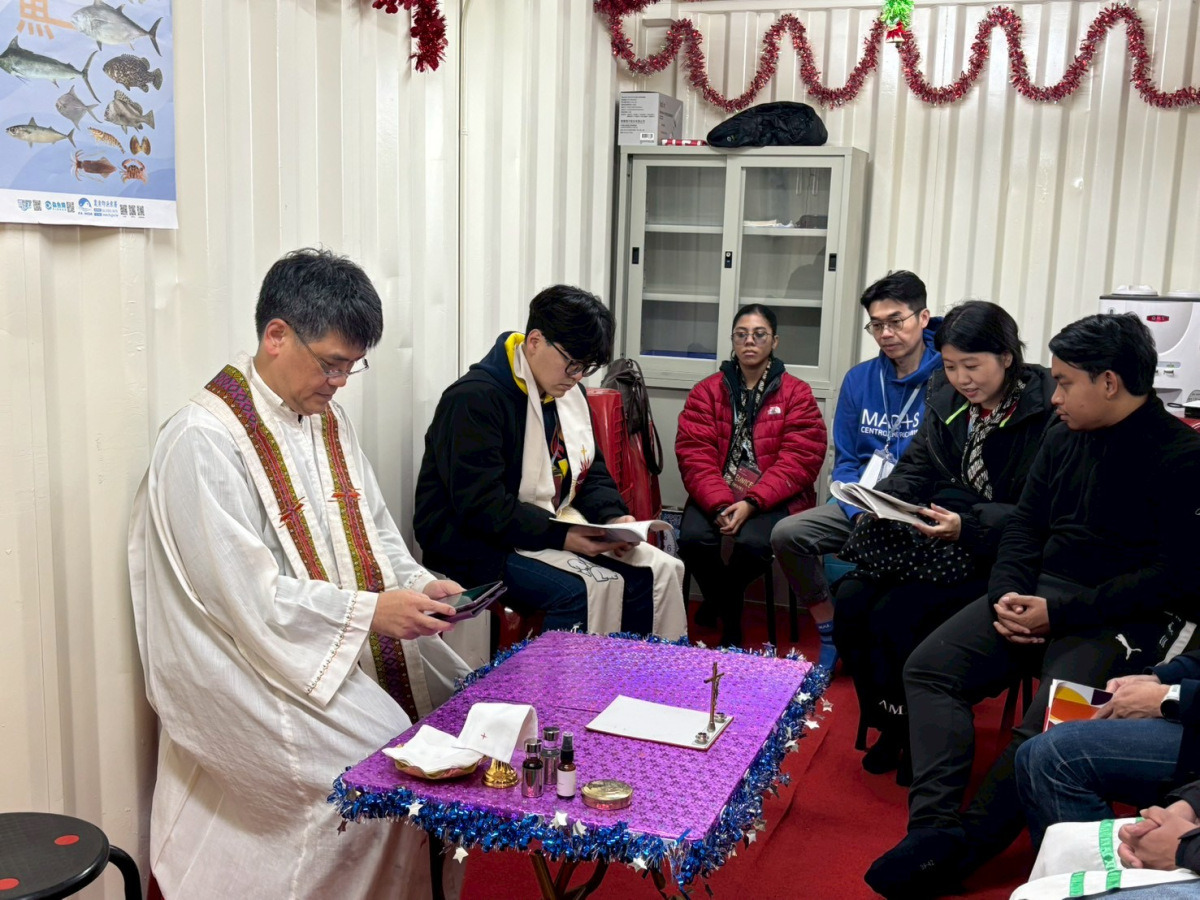 下午,大夥來到正濱漁港,在港邊剛啟用的基督徒聚會所裡,徐神父帶領大家舉行彌撒。在彌撒中,神父分享的一句話,深深呼應了新事一路走來的信念:「我們知道很多事情我們去無法解決,但請你們不要離開他們,繼續陪伴在他們的身邊。」