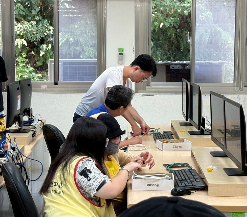 然而,學員們在參與過程中也面臨了諸多挑戰。由於職災帶來的肢體障礙,學員的手部難以進行精細操作,手感不順暢,或稍微費力就感到吃力,需要老師在旁協助。加上學員們的年紀偏長,對電腦與網路設置相對陌生,而製作網路線時比想像中更耗費眼力。這些不熟悉與身體限制,讓學員一開始有退縮、不敢嘗試的反應。