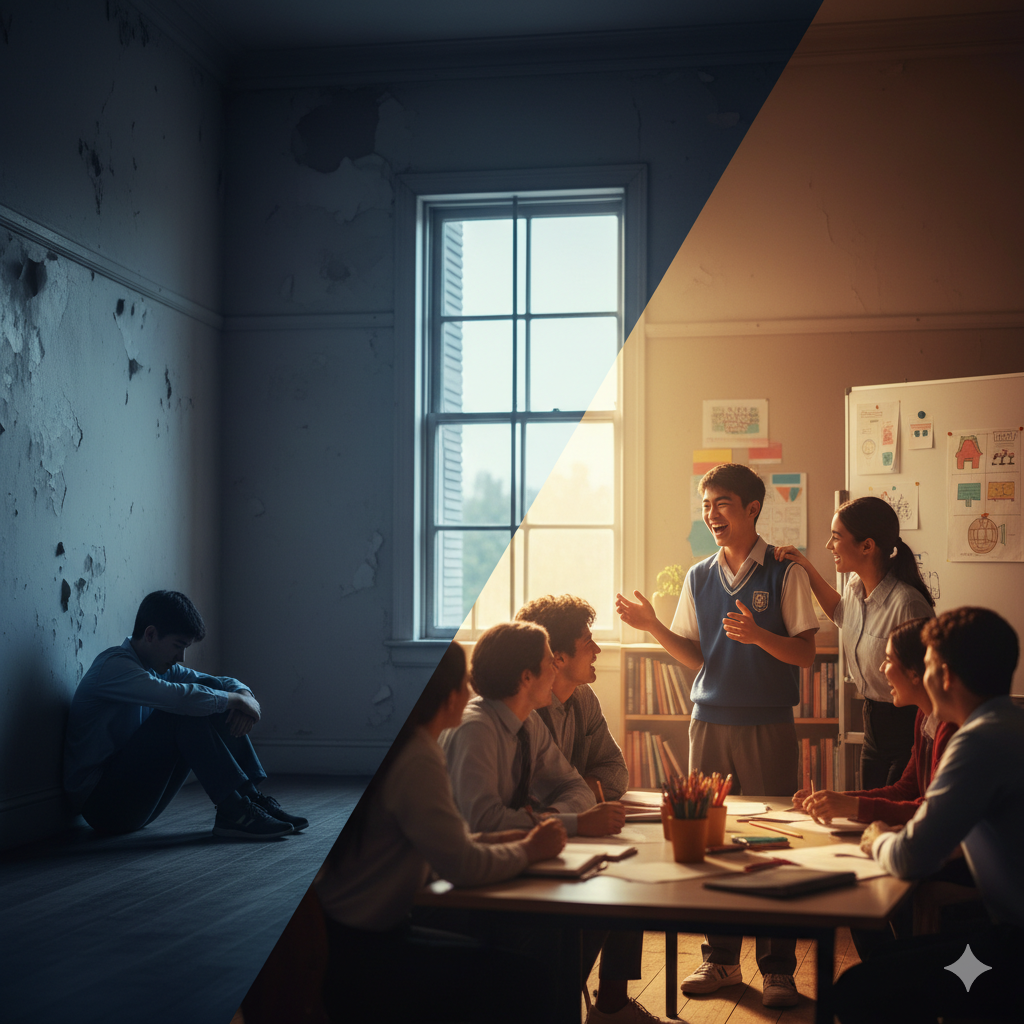 隨著一次次社工的陪伴以及同學們的互動與支持、玩遊戲與團體活動,小瓦漸漸卸下心防。他開始願意嘗試發言、參與活動,笑容也慢慢回到臉上。