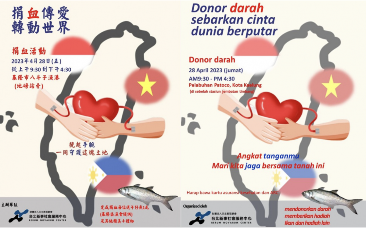 中央廣播電臺 歡迎移工捐血 挽袖就送午仔魚 漁工加贈防潮墊