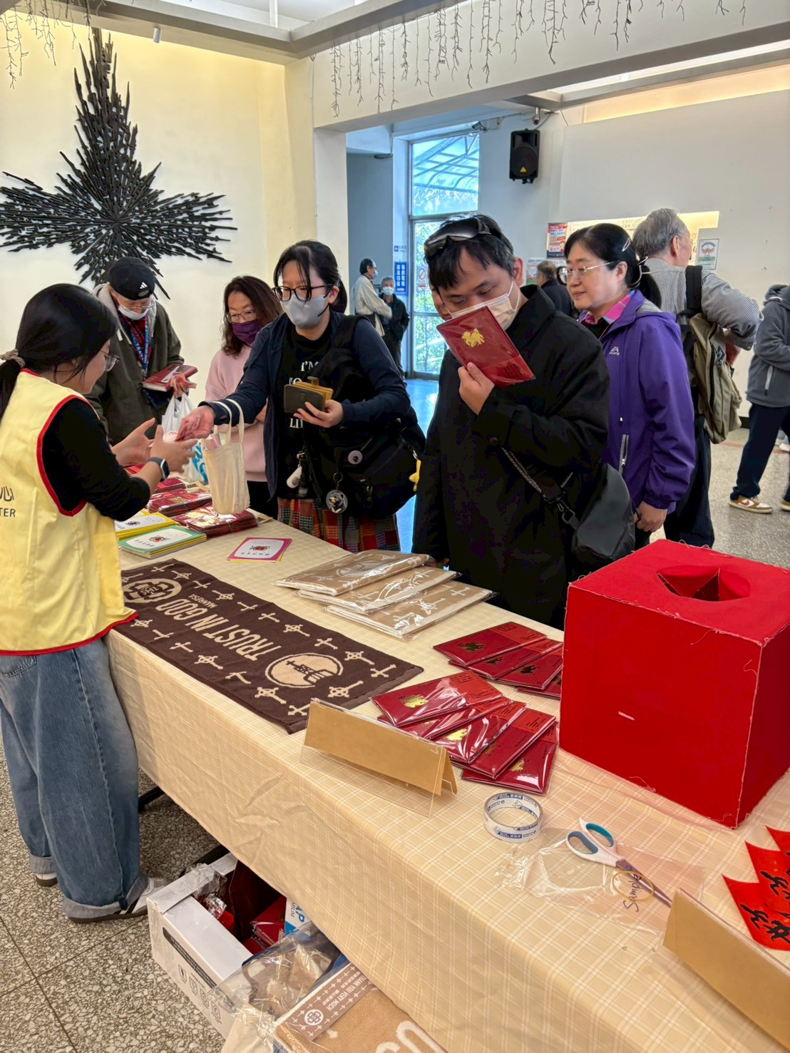 1/25(日),新事社會服務中心 與 好春設計 一同來到 耕莘文教院古亭耶穌聖心堂參與彌撒,並在大廳擺攤舉辦「馬年紅包袋」義賣活動,現場洋溢著新年的喜氣與滿滿祝福。