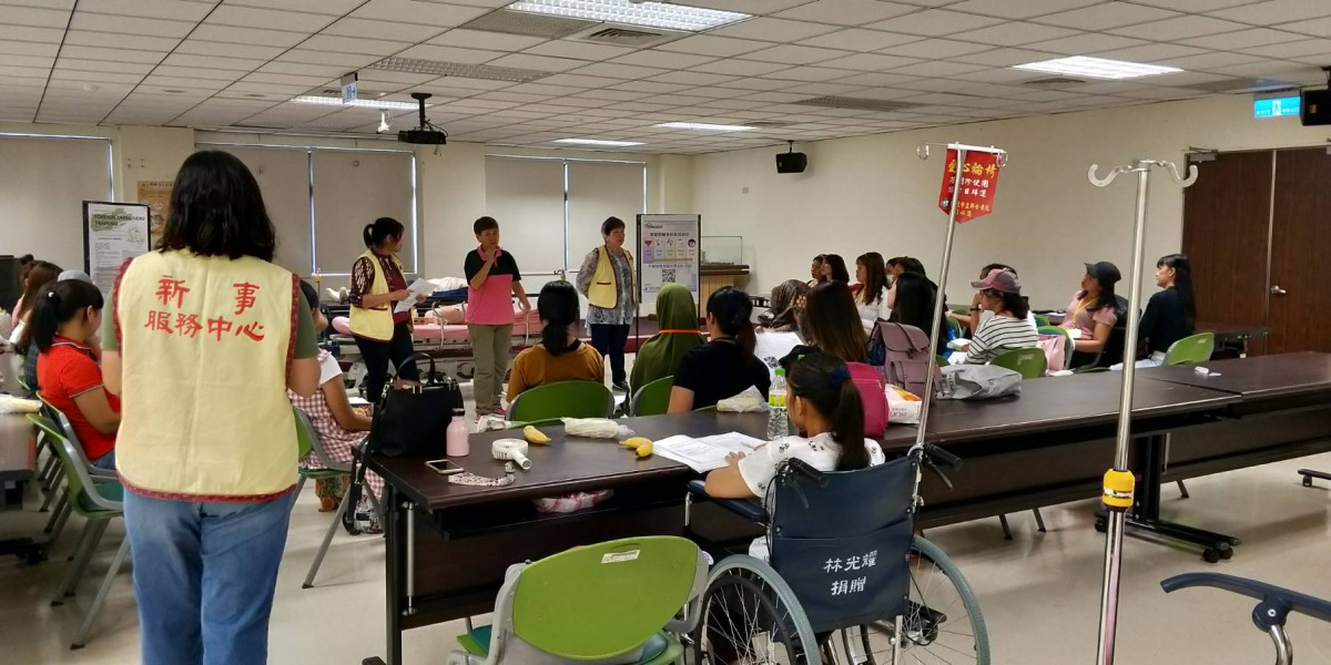 本中心於108年8月18日與新北市立聯合醫院合辦移工照顧服務訓練,經由台北市勞動力重建運用處指導,共有28位(印尼15位、菲律賓13位)參加學員反應熱烈,課程中經由楊陳碧滿護理師、吳佩穎護理師的教學,讓參與移工學習病患照顧的基本原則和實做技巧練習,讓外籍看護工更能瞭解病患的需求,提升照顧品質及減少因照顧問題而產生之衝突。