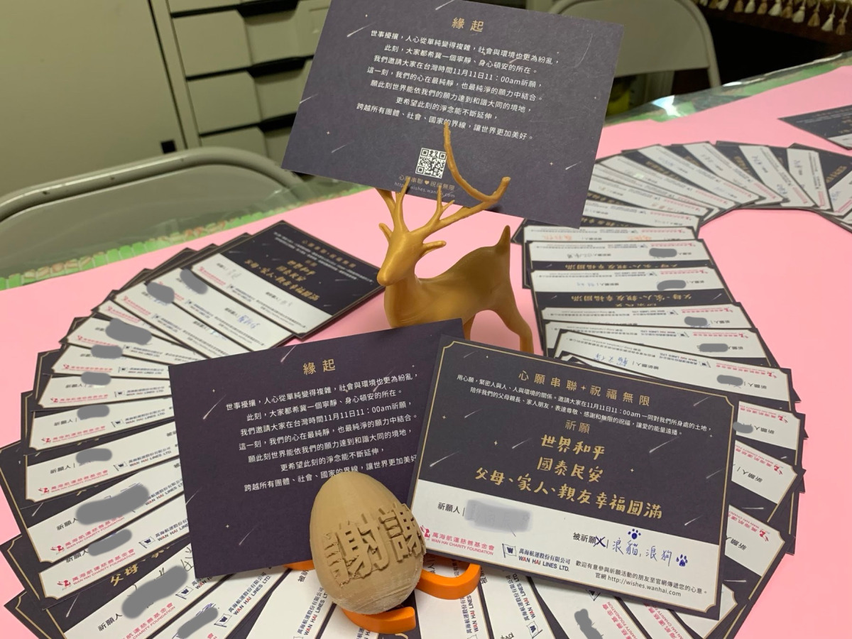新事課輔班收到萬海航運慈善基金會所邀請的心願串聯祝福無限活動,邀請我們寫下自己想要祈福的對象,並且於11月11日上午11:00與參與活動的大家一同祈福。