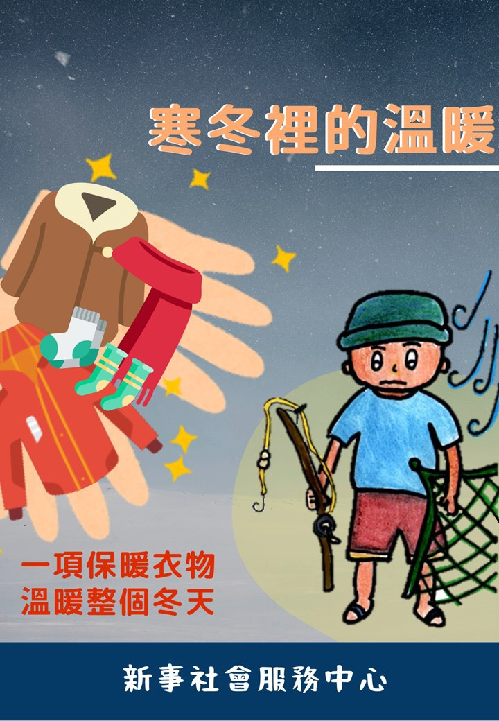 新事在服務中看見外籍漁工在寒冬時有保暖的需求,因此每年在寒冬前開始募集社會大眾的溫暖愛心物資,將收到的物資發送到外籍漁工的手裡,讓人在異鄉的外籍漁工能感受到像家一般的溫暖,雖然家人遠在數千公里外的地方,但是透過台灣民眾的愛心關懷,讓每一位外籍漁工都能感受到像家的溫暖與關懷。