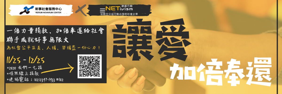 由網絡行動科技發起、新事社會服務中心實踐之限時募捐—「企業一七捐」開跑摟!