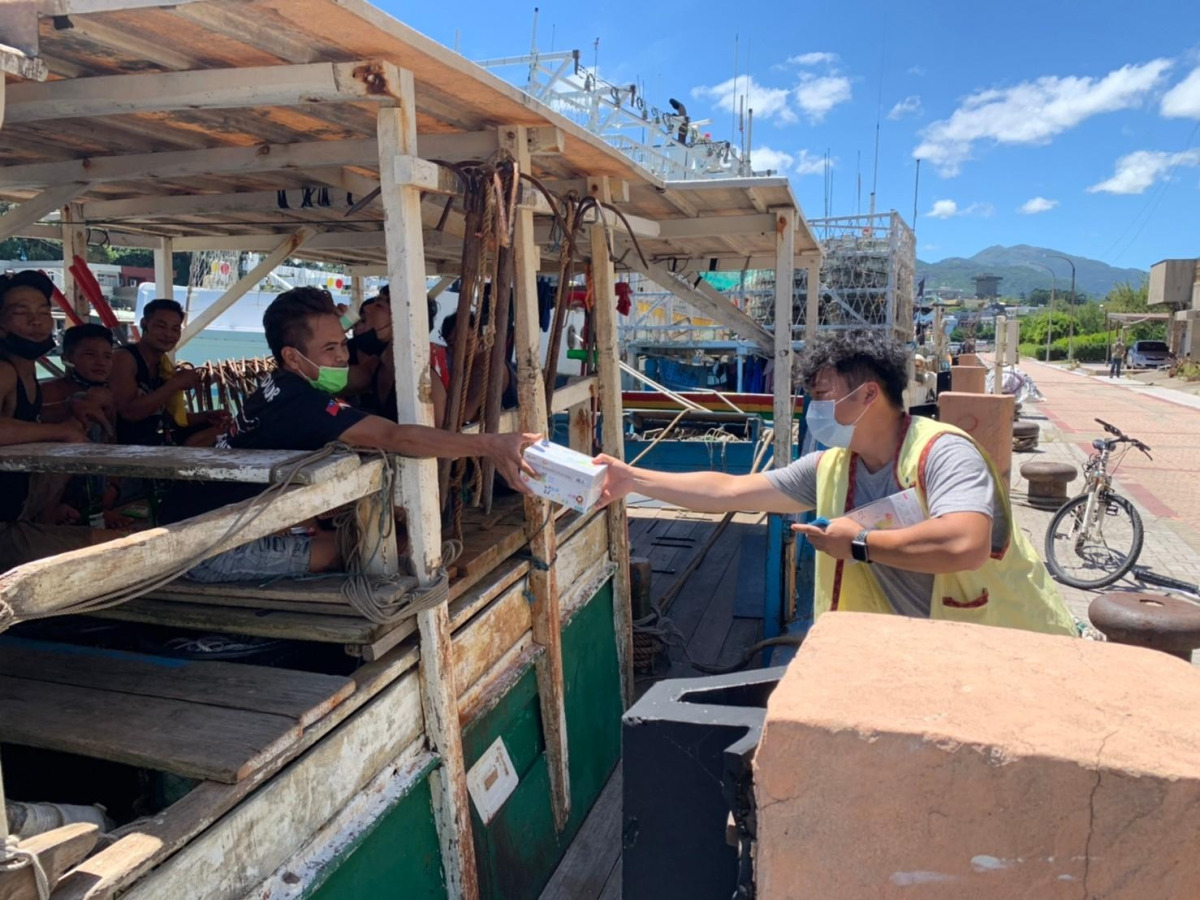 每位拿到防疫物資的漁工們,紛紛表示感謝,並告知我們,之前收到的口罩早就用完了,在這樣炎熱的夏天工作,戴口罩真的非常難受,常常一天就因著汗水而弄濕好幾個口罩,有時候口罩濕到都能滴出汗水。我們除了安慰他們,同時也感謝他們願意為防疫而忍耐,在這樣炎熱的夏天願意為了防疫戴上口罩工作。