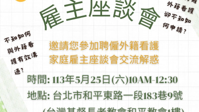 - 台灣邁向高齡化的社會,照顧人力缺乏是必須面對的問題,新事社會服務中心與天主教聖家堂合作,於5月19日週日上午展開社區活動,除了有印尼美食和二手義賣攤位外,同時開放社區家庭對於聘僱移工的諮詢服務。
