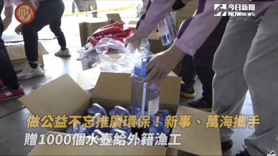 做公益不忘推環保! 新事、萬海攜手 贈1000個水壺給外籍漁工