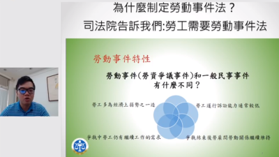 • 勞動事件法在今年1月1日上路,可是能幫助職災勞工朋友哪些地方呢? 上庭一樣聽不懂?法官問我很兇?別擔心!